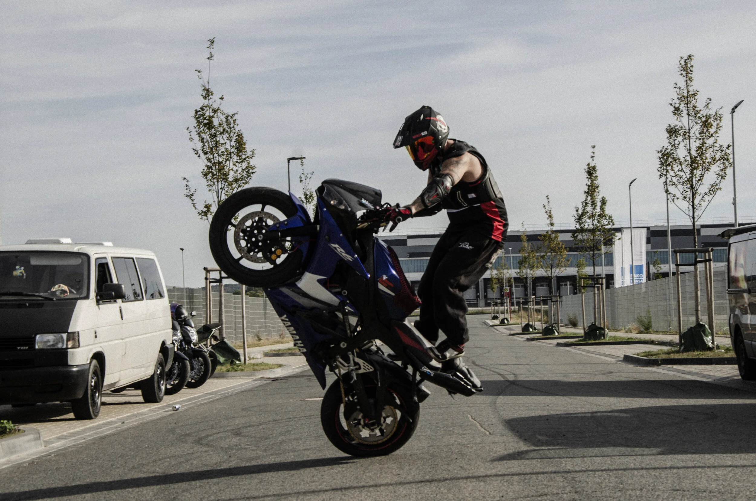 Kurze Blicke, die sich trafen. Also Mädchengruppe und Halbstarker, meine ich. Ich war nur Beobachter der Situation. Der Typ zieht ruckartig am Lenker und gibt mächtig Gas. Er legt einen Wheelie bis zur nächsten Kreuzung hin, der sich mal gewaschen hat. Zumindest in der Leistungsklasse der 125er Zwiebacksägen.